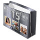 Um saco de presente para uma Quinceañera, menina glamourosa e giro, 15. Um fundo com aspecto sujo de prata com poeira brilhante. Personalize e adicione 3 fotos e um nome. O número 15 é escrito com uma fonte no estilo do balão. Perfeito como um saco de favores ou como um saco de presentes.