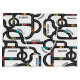 Saco de presente bonito e personalizável para um aniversário de meninos com carros de corrida coloridos a conduzir numa pista de corrida negra sobre um fundo branco.