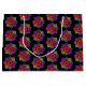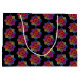 O saco de presentes apresenta o padrão de mandala de flor colorida arco-íris em fundo preto.