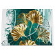 Ramificação com joias, ouro e folhas verdes de Ginko biloba à luz, pintada de fundo verde. Ginko biloba