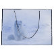 Saco de presente de Natal com uma fotografia de uma raposa ártica branca. Uma paisagem de neve invertida rodeia esta criatura encantadora.