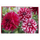 Glamorize seu dom com este grande saco de presentes estilo, com caimento vermelho, que mostra uma foto das lindas flores vermelhas da Dahlia, assim como Dahlias variegadas, vermelhas e brancas. Um design floral adorável! Selecione o estilo do seu saco-presente.