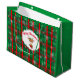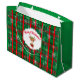 Sacola Para Presentes Grande Reindeer de Neve Verde e Xadrez Vermelha