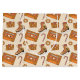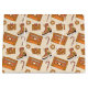A fun holiday late 70s-early 80s retro illustrated pattern with cassette tapes of holiday mixes, intricately detailed ice skates, ornaments, gifts, and candy canes.