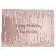 Um saco de presente para um aniversário de 21 ruas (ou qualquer idade) feminino e glamouroso. Um fundo rosa dourado com pingos de falso brilho, aparência de pingar tinta. Trendy bloga cartas e o texto: feliz aniversário. Personalize e adicione um nome.