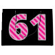 Um dos lados desta divertida e simples design de dogma com tema de aniversário tem um grande número de "61" com um padrão cor-de-rosa escuro e listras de rosa claro. O outro lado tem a mensagem de saudação de aniversário "Feliz aniversário de 61ruas", e um nome personalizado, ambos em texto amarelo. O fundo tem uma coloração preta. Um saco-presente como este pode ser usado para embrulhar presentes ou presentes em honra do sessenta aniversário de alguém. [~Z0000378]
