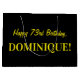 Um lado deste design de saco-presente com tema de aniversário simples e divertido apresenta um grande número "73" com um padrão cor-de-rosa escuro e listras de rosa claro. O outro lado apresenta a mensagem de saudação de aniversário "Happy 73rd Birthday", e um nome editável, ambos em texto amarelo. O fundo é preto colorido. Um saco de presentes como este pode ser usado ao embrulhar presentes ou presentes sendo dados a alguém que comemora seus setenta e três anos. [~Z0000378]