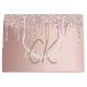Um fundo metálico falso de rosa dourado com pingos falsos de rosa dourado, aparência de pingar tinta. Personalize e adicione um nome e iniciais de monograma. O texto: O nome é escrito com um script estilo moderno, escrito à mão.Perfeito para aniversários, chás de fraldas e chás de panela.