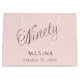 Rosa dourado, fundo esfregado. Noventa é escrita com um guião rosa de ouro escuro. Personalize e adicione um nome e data.