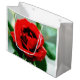 Rosa vermelha magnífica com gotas de orvalho matinal. Linda rosa vermelha florescendo no jardim. A rosa vermelha simboliza amor, paixão, romance e devoção.