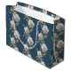 Sacola Para Presentes Grande Rosas brancas e folhas de ouro sobre fundo azul