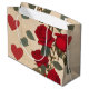 Sacola Para Presentes Grande Rosas vermelhas com padrão de coração romântico