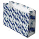 Esta imagem mostra uma sacola de presente maravilhosamente projetada com um elegante padrão de mármore azul, realçado por delicadas listras de ouro e elementos florais suaves. O efeito da aquarela artística adiciona um toque de sofisticação, fazer perfeito para embalagens de luxo, presentes especiais ou sacos de compras de na moda. O padrão repetitivo cria uma estética visual atraente e contínua.