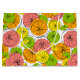 Um meio século inspirou um design com um toque retrorreflector com fatias estilizadas de frutas de citros - laranja, limão, limão e toranja, sobre fundo branco. Um design personalizável para você personalizar com seu próprio texto, imagens e ideias. Uma imagem de arte digital original criada por Jess Perry no QuirkyChic Retro.