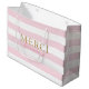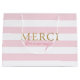 Saco de Presente de Obrigado Merci Beaucoup com Listras Rosa Dourado