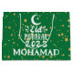 Saco de presente moderno e fofo com estrelas verdes Eid Mubarak 2023 que você pode personalizar e personalizar o nome - Saco de presente Feliz Eid saco de presente de feriado muçulmano Eid pela Paper works co.