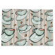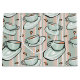 Uma ilustração peculiar de xícaras de chá ou café voando pelo ar, sobre um fundo de listras verdes, laranja e brancas. Delicioso para quem ama uma boa bebida quente. Coleção Medley.