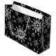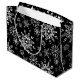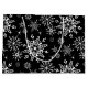Saco de presente de Natal é mostrado em um festivo floco de neve de inverno impressão design. Preto colorido