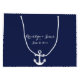 Sacos-presentes náuticos azuis marinhos grandes personalizados para casamento com âncora branca e texto personalizável