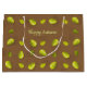 Criei este padrão de fruta da imagem na minha pintura acrílica intitulada Pumpkin and Pear. Opção para alterar as cores do texto e do plano de fundo neste saco-presente de pera. O texto e o gráfico (atrás do texto) podem ser removidos para descobrir o padrão de pera do cheio.