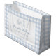 Belo e pastel azul francês inspirou sacos de presentes para chás de bebês com padrão elegante de gingham.