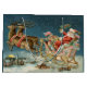 Papais noeis de Natal no seu trenó - Esta imagem é de um antigo cartão de Natal antigo dos anos 1800. Mostra papais noeis no trenó na véspera de Natal, com suas renas e brinquedos!