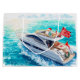 This cheerful coastal Christmas collection features Santa sailing across bright turquoise seas in a relaxed holiday mood.