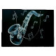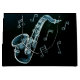 estilo livre azul e preto desenhando em branco de saxofone com notas musicais. instrumento musical em preto e azul.