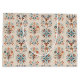 An intricate blue and tan pattern of Scandinavian folk art deer and snowflakes