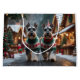 This festive design captures the joyful spirit of the holiday season, featuring an adorable dogs.Nestled in a winter wonderland, complete with a decorated Christmas tree, and beautifully wrapped presents. Snowflakes gently fall, adding a magical touch to the scene, while the vibrant colors of the holiday decorations create a warm and cheerful atmosphere.
