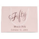 Rosa dourado, fundo esfregado. 50 é escrito com um guião rosa de ouro escuro. Personalize e adicione um nome e data.