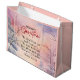 A grande bolsa de presente de Natal com uma escritura de citação inspiradora retrata uma bela cena de vencedor de aquarela com simples neve coberta de pinheiros e um céu de pôr do sol rosa. Ele apresenta uma parte da Bíblia Verses Números 6:24-26, "O SENHOR te abençoa e mantém você; O SENHOR faz seu rosto brilhar sobre você, e lhe dá paz."