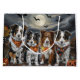 Libere o espírito assustador com esta design sombria do Dia das Bruxas apresentando um bando de cachorros sob um céu escuro e iluminado, cercado por morcegos voadores e abóboras brilhantes. Perfeito para aqueles que amam um toque de diversão terrível com seus amigos peludos!
