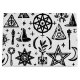 Aqui está um presente temático perverso de volta com uma variedade de símbolos associados a bruxaria e o oculto. Temos pentagramas, vassouras, velas, chapéus de bruxa pontiagudos, pentáculos, luas em crescente, estrelas e muito mais. Estas são todas pretas em branco. Esta é uma bolsa legal se você está dando um presente a uma bruxa ou oculista.