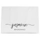 Elegante White Modern Minimalista Mínimo de Nome do Monograma Feminino Moderno Signature Script Personalizado Gift Bag Personalizado. Este design com seu primeiro nome em um estilo bonito com letra maiúscula com letra maiúscula com letra maiúscula (ou caligrafia) com texto "BRIDESMAID" a preto sobre fundo branco. Estes são fáceis de personalizar. Este excelente de presente feminino para casamento, chá de panela, para uma proposta de dama de honra ou festa de solteira e é para a garota que ama coisas minimalistas únicas.
