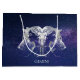 Um céu estrelado e atordoante com a Via Látea e um painel zodiaco Gemini apresentando perfis iluminados de gêmeos femininos e lobos. Personalize alterando o texto ou personalize ainda mais para adicionar seu próprio toque.