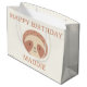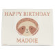 This sweet birthday gift bag design features the adorable Slumberkins Sloth character centered in a clean, modern layout that feels warm and inviting. The sloth’s gentle expression is framed by soft neutral tones in blush and beige, creating a cozy, calming look that’s perfect for little ones. The curved “Happy Birthday” message paired with a customizable name adds a personal touch while keeping the design simple and easy to read. Ideal for baby birthdays, toddler celebrations, or animal-themed parties, this gift bag coordinates beautifully with matching décor and adds a charming Slumberkins touch to any birthday surprise.
