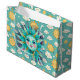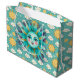 Um Grande Saco De Presente Teal Que É Colorido Com Suns E Nuvens Felizes De Sol E Com Um Centro De Design Sun Virado Para O Groovy