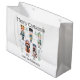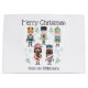 Esta bolsa de presente de Natal apresenta um tema clássico de "nutcracker soldado de brinquedos". Cinco bolachas de estilo de safra diferentes são impressas em um design de pintura a aquarela, e acentuadas com ramos de inverno e flocos de neve. Uma saudação de "Feliz Natal" é impressa no topo, com um nome de família de amostra impresso no final. Você pode personalizar o saco de presentes para incluir seu próprio nome personalizado ou texto.