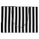 Saco grande com listras brancas e pretas na frente e atrás. Ambos os lados são pretos sólidos. Personalizável. Moderno e moderno, é a bolsa clássica perfeita para doação de presente.