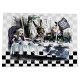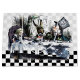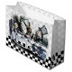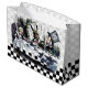 Grande sacola de presente brilhante com uma imagem antiga Alice no País das Maravilhas, na frente e atrás, da festa de chá do Mad Hatter com Alice, The March Hare and Dormouse em uma cinza e um quadro de xadrez branco e preto e branco. Veja o saco de presentes médio, confetti, bolsa de favor, caixa de favor, etiqueta de presente, adesivo retangular e papel de embalagem. Veja toda a coleção Alice no País das Maravilhas Gift Bag nos TOUCHES ESPECIAIS | Seção Favoritos para festas.