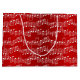 Bares festivos de notas musicais em um fundo vermelho alegre do Natal