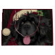 Cãozinho da Terra Nova, desenhado à mão e colorido, apresentava um perfil vestindo um Santa Hat, preto e dourado