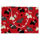 Cães escoceses, cinzas e cães escoceses que vestem arcos, com pegadas e ossos de cães em fundo vermelho.