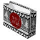 Saco temático do presente da camisola nórdica vermelha e cinzenta do Natal com as palavras "Feliz Natal".