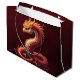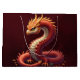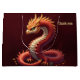 The golden serpent dragon. The dragon's body is covered with intricately crafted scales that shimmer in a harmonious interplay of red, gold, and cream tones, lending the creature a vibrant texture. The dragon's head is reminiscent of an eagle: powerful, majestic, and with a pointed beak symbolizing power and wisdom. The piercing eyes are an intense blue-green.