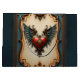 Timeless love, surreal elegance in steampunk style. The design features an ornate steampunk-style frame, captivating with its delicate carvings and gold accents. The frame is richly decorated with intricate patterns and shimmering metallic details reminiscent of Victorian mechanics and artisanal precision. The frame's surface appears slightly aged, underscoring its authentic steampunk charm. A red heart adorned with gold details is visible at the bottom of the design. The heart is flanked by delicate blue wings, lending it a touch of lightness and romance.