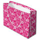 SACOLA PARA PRESENTES GRANDE TINTA QUENTE COM FLORES DE HIBISCO BRANCOS TROPICA