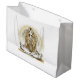 Esta elegante bolsa de presente apresenta uma mulher meditante de um lado e o símbolo Om do outro, ambos ilustrados em espias e tons dourados. Perfeito para qualquer ocasião, incorpora tranquilidade e harmonia espiritual.