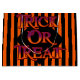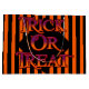 Letras cor de laranja vibrantes tradicionais saudando "Trick or Tratat" no Halloween.